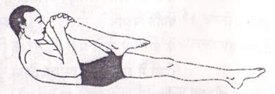 - फिर दोनों पैर एक साथ ऊपर उठाकर हाथों से घुटनों को पूर्ण रुप से लपेट कर फिर से 10 बार कीजिए।